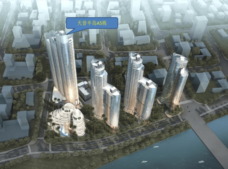 天誉半岛花园位于海珠区洲头咀,白鹅潭畔,三江汇聚之源,270度稀缺一线江景。小区共建7栋单体建筑:A1为酒店,A4为写字楼,A2/A3/A5-A7为超高层住宅。