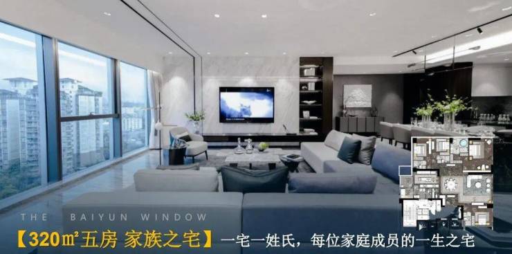 项目规划:白云之窗是白云新城核芯地标综合体,B塔为36层高、主力户型超300m的精奢大平层