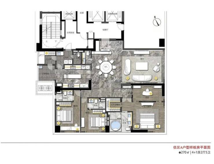 户型面积:240m²(4+1房2厅3卫);270m²(4+1房2厅5卫);320m²(5房2厅6卫);320m²(3+1房2厅4卫)