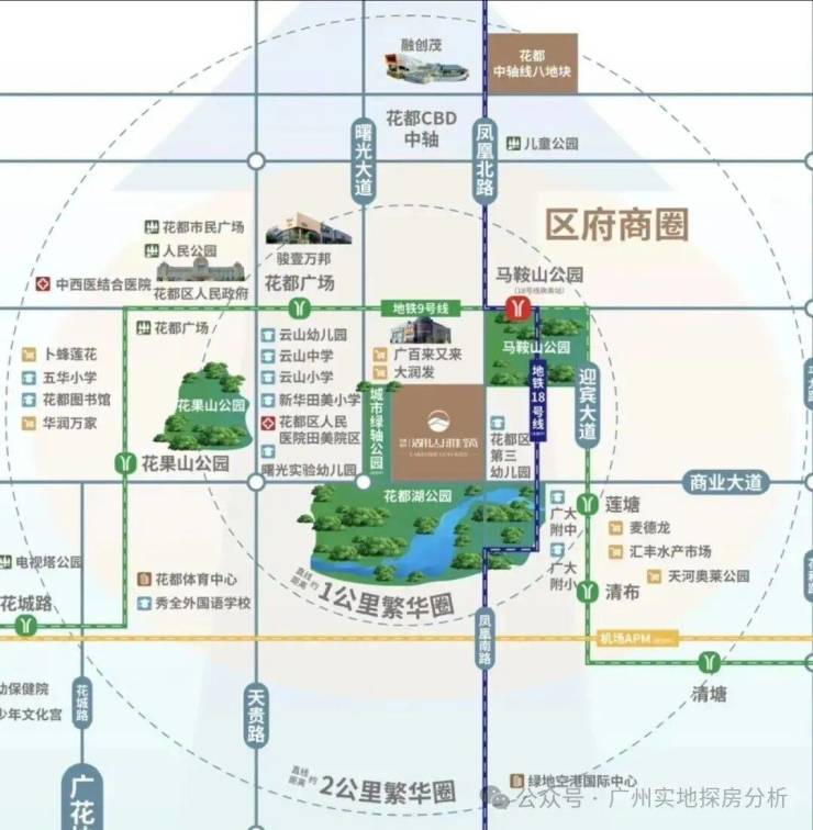 1、地理位置优越,北靠马鞍山公园,南望花都湖湿地公园,步行约500-600米可达,兼具自然景观与城市配套。周边1公里内有广百、大润发等商业中心,生活便利。距离地铁9号线马鞍山公园站约2公里,未来可换乘18号线直达珠江新城,交通便利性逐步提升。