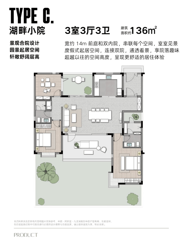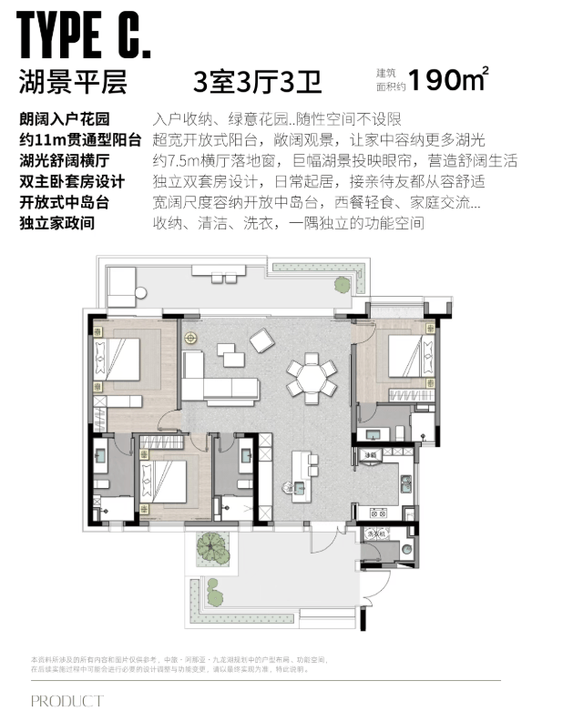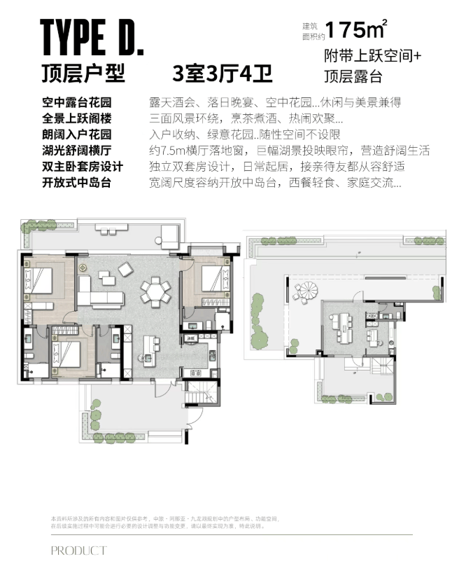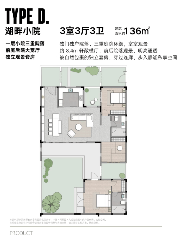 ▪️产品空间拥有宜人的尺度与丰富多变的户型设计,层层不同,户户舒展。一二层(湖景平层)带有下跃空间及前后双庭院、顶层户型设有视野极佳的景观露台… 无论居住在哪种户型,都能享受自然舒适的生活意趣。