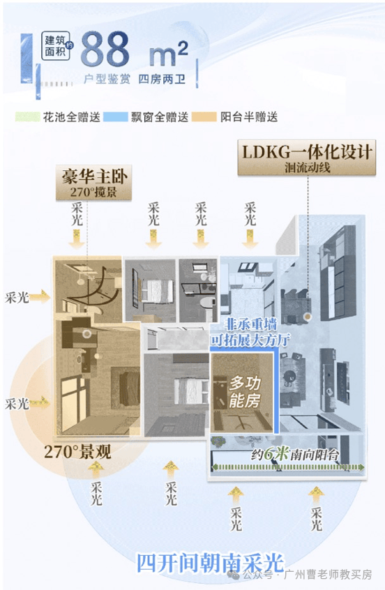 保利怡璟湾作为当时广州首创零飘窗设计,去除鸡肋的飘窗,真正做到把面积全部归还室内,增加室内面宽和实际使用率,而且其产品,使用率在现阶段小户型里面非常突出,朝向均为全南向,连最小户型76㎡都做了双卫和入户玄关设计