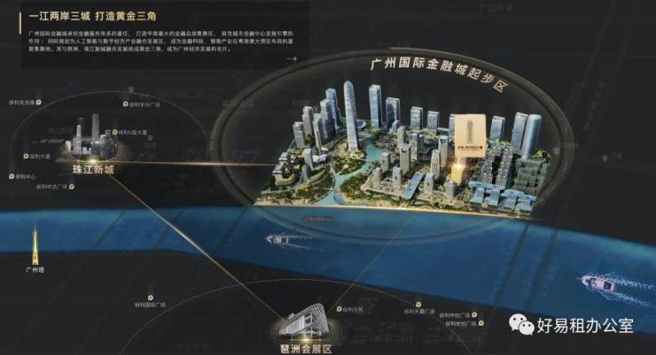 广州一江两岸三片区核心,国际金融城与珠江新城、琶洲电商区联动互补,共同发展;