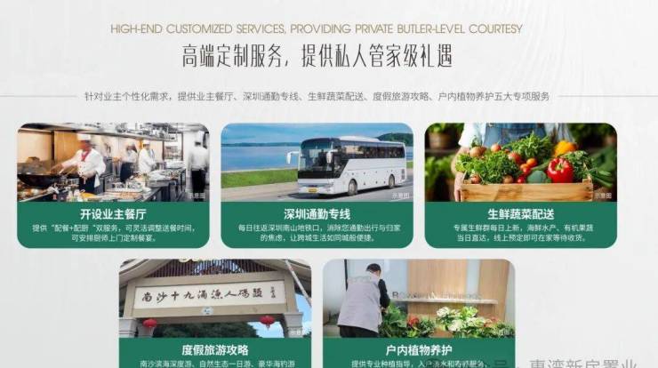 而且,考虑到大家的顾虑,物业服务除了基础服务外,还针对业主个性化需求,提供高端定制服务,有业主餐厅,深圳通勤专线、生鲜蔬菜配送等等。