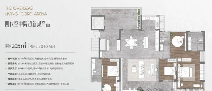 最大的205㎡更是“降维打击”!约32㎡的空中庭院,约19.8米南向大面宽,超36㎡的阳台,视野开阔到能把窗外的风景框成一幅画,这种尺度在同类型产品里可谓是相当能打。