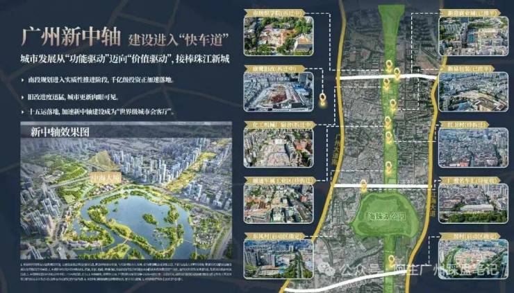 新中轴南段规划已进入实质性推进阶段,已拆除约62万方,千亿投资正加速落地。新中轴海珠片区被列入“全市四大重点城市更新片区”,已建立“双指挥部+公司”工作机制,成功获批国家首批城中村专项借款,突飞猛进日新月异!