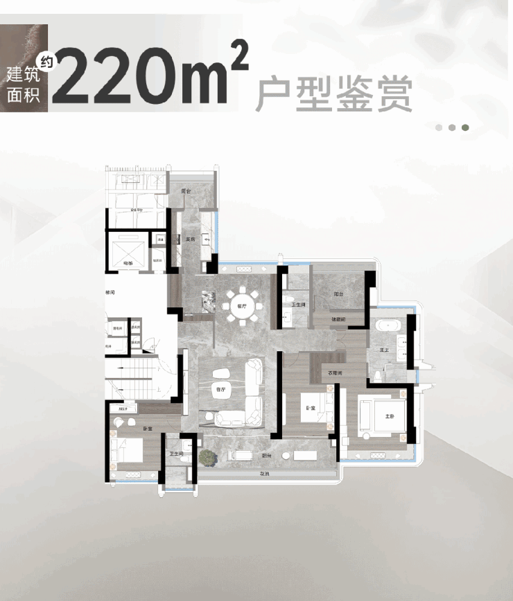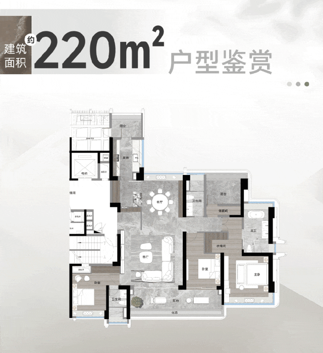 全栋只做了一个户型——建面约220平,圈层感更为纯粹!