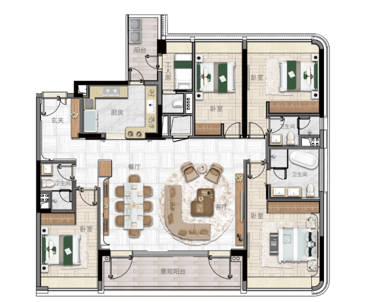 侨鑫·保利·汇景台项目由知名房地产开发公司侨鑫与保利集团共同打造,建筑面积约94,051平方米。项目规划为低密度住宅小区,总体规划由14栋12层小高层组成,产品涵盖从123㎡至352㎡的三至五房户型,满足了不同家庭的居住需求。项目以其独特的建筑风格与精致的设计理念,成为广州市顶级豪宅社区之一。
