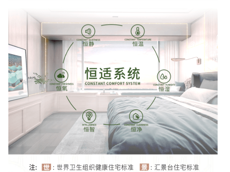 侨鑫·保利·汇景台秉承优于世界卫生组织健康住宅的标准于广州首次引入恒适科技健康系统以仿生学为技术理念,以水为能量载体为每个家创造“独立的小气候”精准匹配居者对健康舒适生活的需求
