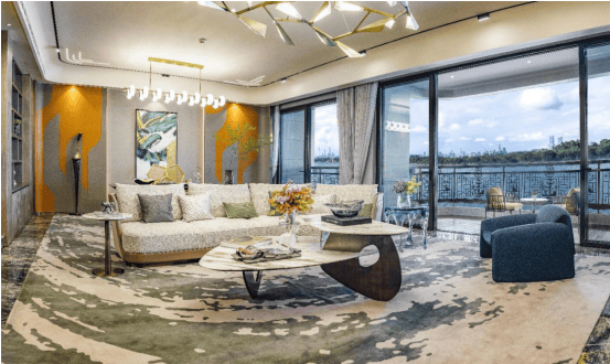 层高 3.57 米,厅堂宽达约 9.5 米,临江外飘的休闲厅宽达 5.8 米;