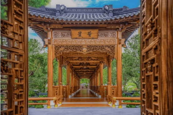 4)满工雕花·精湛工艺 精挑细选的陶瓦屋顶、进口柚木木作及地板、汉白玉石材等顶级材料聘请苏州非遗工匠打造艺术品级的满工雕花