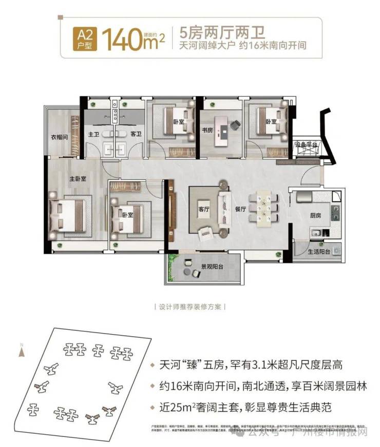 匠心打造高品质低密度大城,拥有中心区难得约10万㎡围合式央景大园林。公园里组团约5.2万㎡央景园林,采用“两轴、三环、四大剧场、六大花园"布局。内享阳光艺术草坪、蔚蓝泳池、全龄游乐园、花语会客厅等,满足全龄化业主需求。