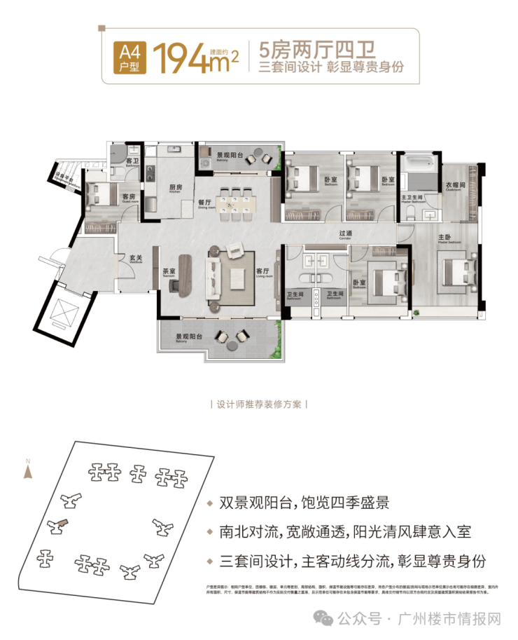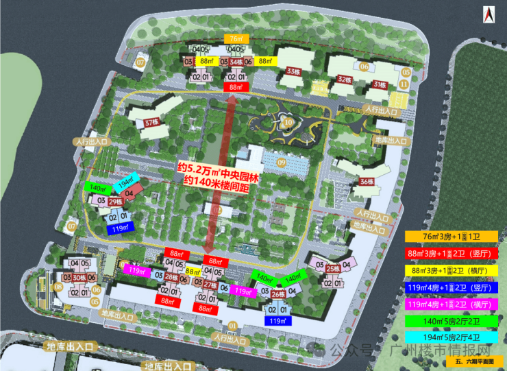 【户型面积】建面约76-88-119-140-194㎡3至5房