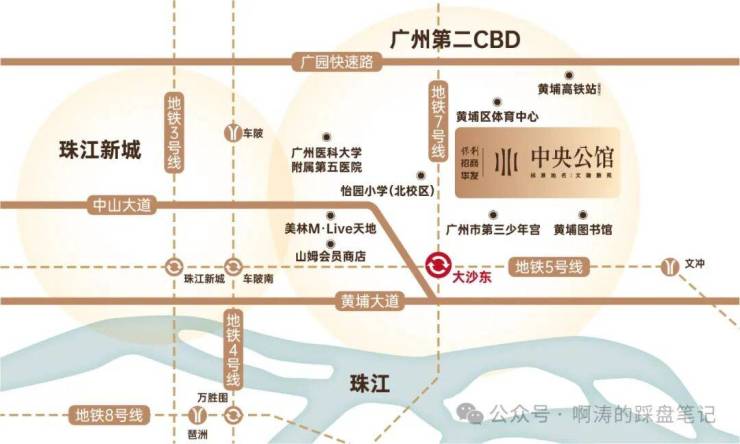 【地铁】5/7号线大沙东站旁,广州地铁黄金大动脉。贯穿天河黄埔。项目到大沙东地铁站步行距离约550米。约半小时内畅达广州各大CBD如珠江新城CBD、琶洲CBD、万博CBD