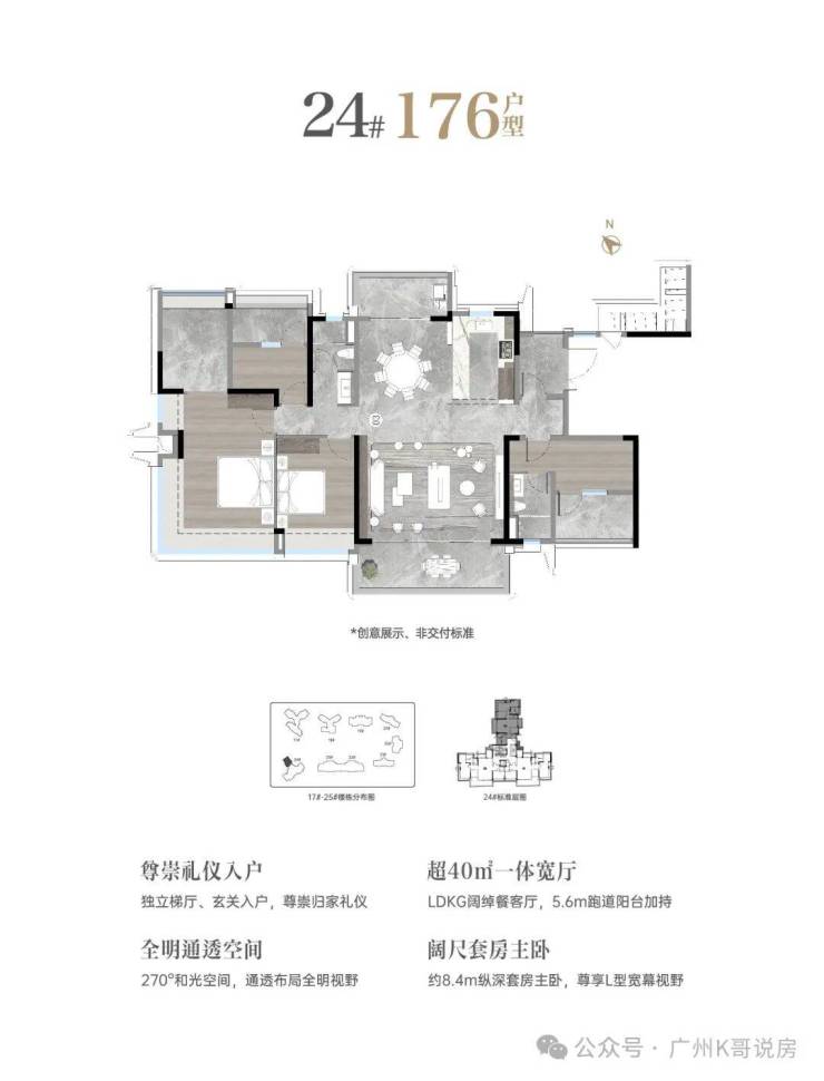 230平户型拥有私家电梯厅、双主套、独立佣人房、南北对流、LDKB大方厅、主卧L型270°飘窗等,大大提升了整体的空间体验。