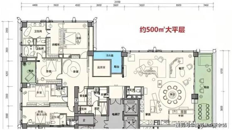 空间尺度:客厅开面12-15米,配备星空会所、架空泳池及量子安全系统