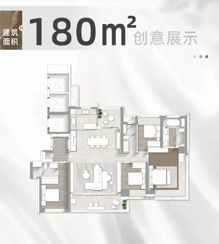 如今很多大户型会着力在豪华用料的堆砌。而悦府这个约180㎡户型,更注重的是让生活变得优雅而高效。