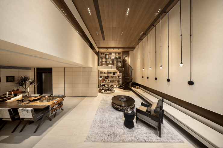 入户大堂,引入人脸识别系统,内部宽敞明亮,搭配高质感岩板、金属格栅和氛围灯,仪式感拉满。