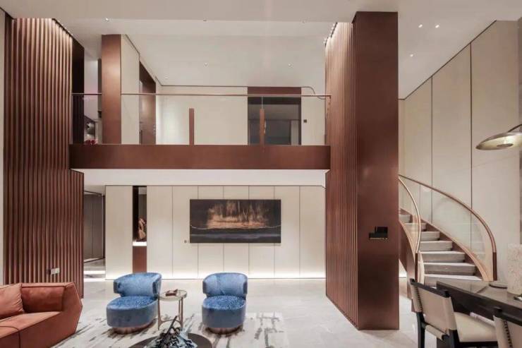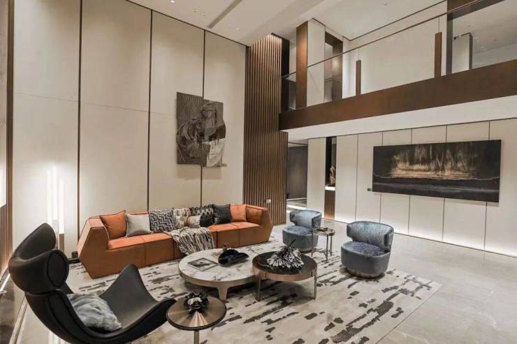 再通过电梯去到三楼、四楼,这边是更加私密的起居室。其中三楼专门配置了双套房,是专属两代人同享的静谧空间。