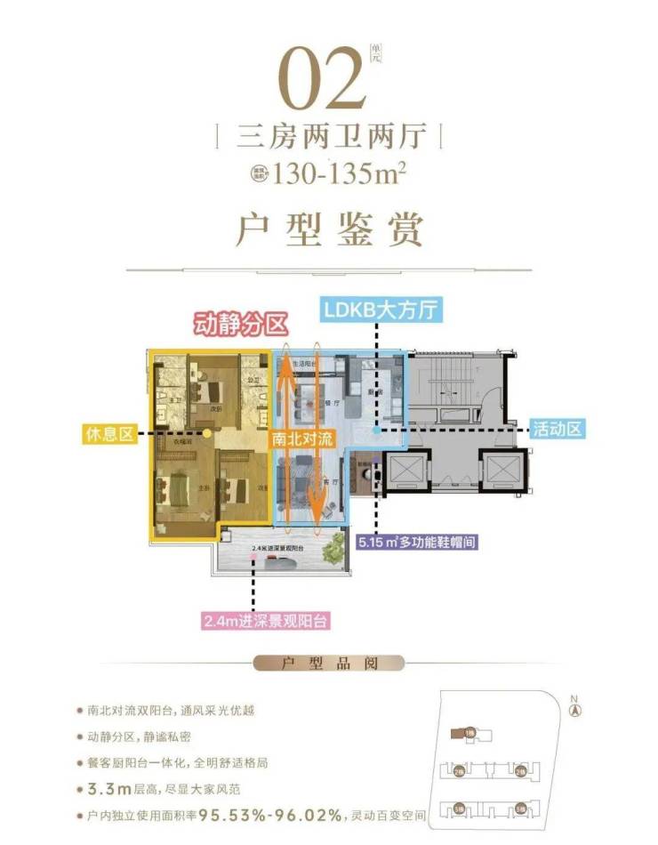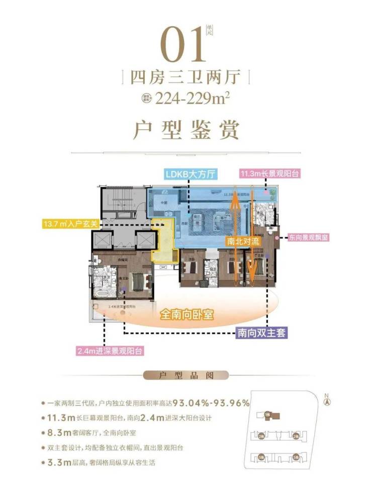 130-229㎡纯粹大平层,聚焦高端产品的专注度 两梯两户板式布局,零接触归家,超宽景观阳台,革新人居体验