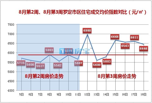 房价透析:上周罗定市区住宅成交均价为6381元/㎡,较8月第2周5693元/㎡大幅度上升了688元/㎡,而两周的房价分水岭为5903元/㎡。