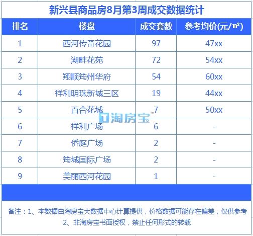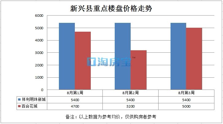 市区重点楼盘价格分析:祥利明珠新城近3周内共成交了229套,3周成交均价保持在5400元/㎡,是近3周新兴县成交量最多的楼盘。百合花城近3周成交均价保持在3200-5000元/㎡,该楼盘近3周共成交了121套。