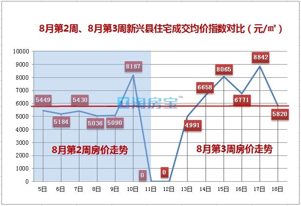 房价透析:新兴县上周平均成交价格为6857元/㎡,相比于8月第2周5729元/㎡大幅度上升了1128元/㎡,两周的房价分水岭为5820元/㎡。(周房价计算已剔除0值)