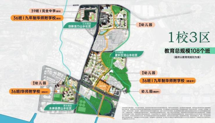 规划打造 8 所学校(4 幼儿园+1 小学+2 所九年制+1 所完全中学),华师附已签约,目送式全龄教育;