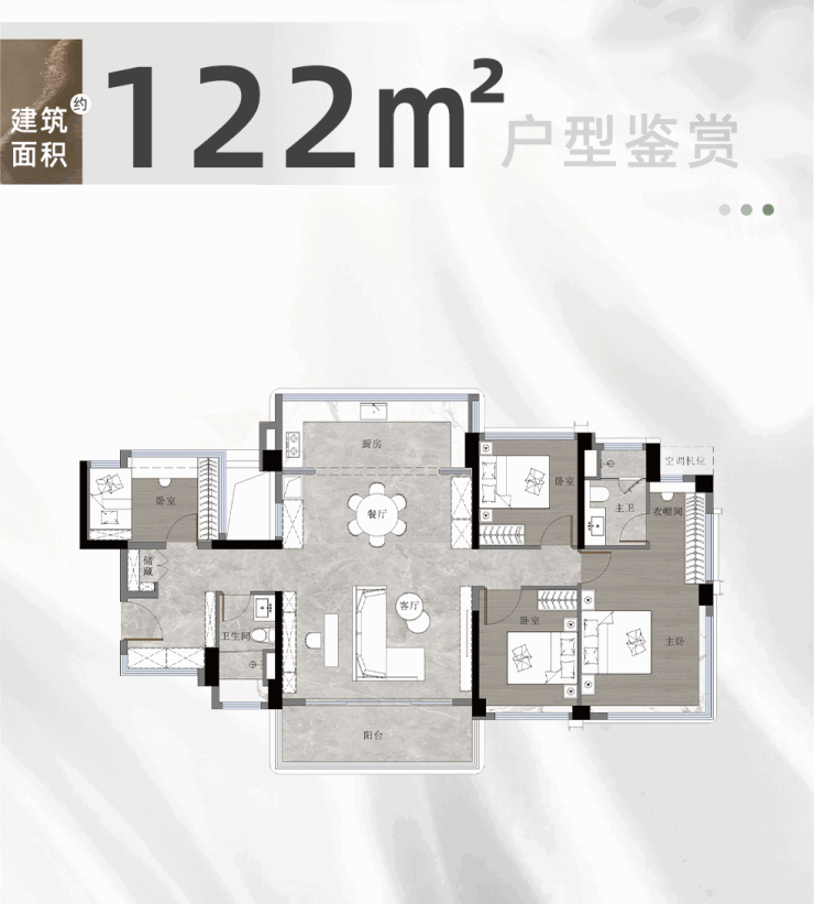 【建面约 122 ㎡ 4+X 房两卫】建面使用率高达约 118%(套内使用率 148%),使用面积约 142 ㎡,