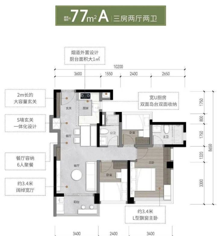 77㎡户型:次卧与客厅灵活可变,适合单身或新婚夫妻全周期需求