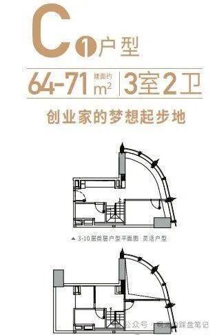 产品类型:48-115㎡复式(1-5房)C塔的loft产品6梯24户;107-350m²平层