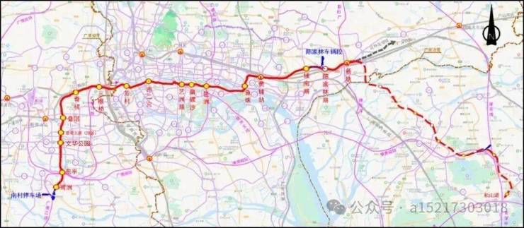 广州段设站10座,佛山段7座,预留延伸至东莞。