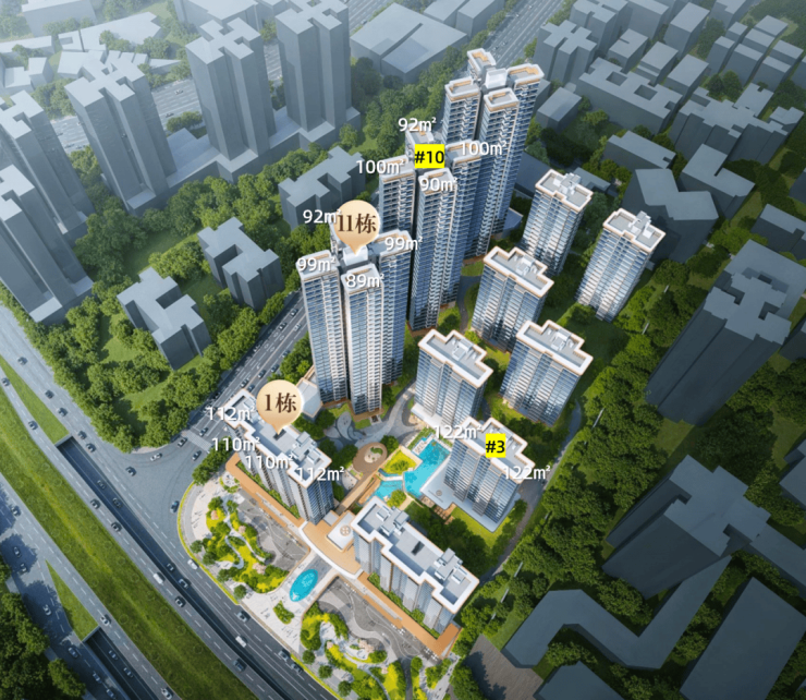 建面约89-98㎡全南向私密塔楼、建面约109-122㎡小高层纯南专梯专户板楼,新规进阶产品,高拓空间格局,随家庭周期共同成长。