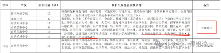 初中则按电脑派位,包括番中附属学校、市桥桥城中学、实验中学、市桥东风中学、市桥侨联中学、市桥星海中学。