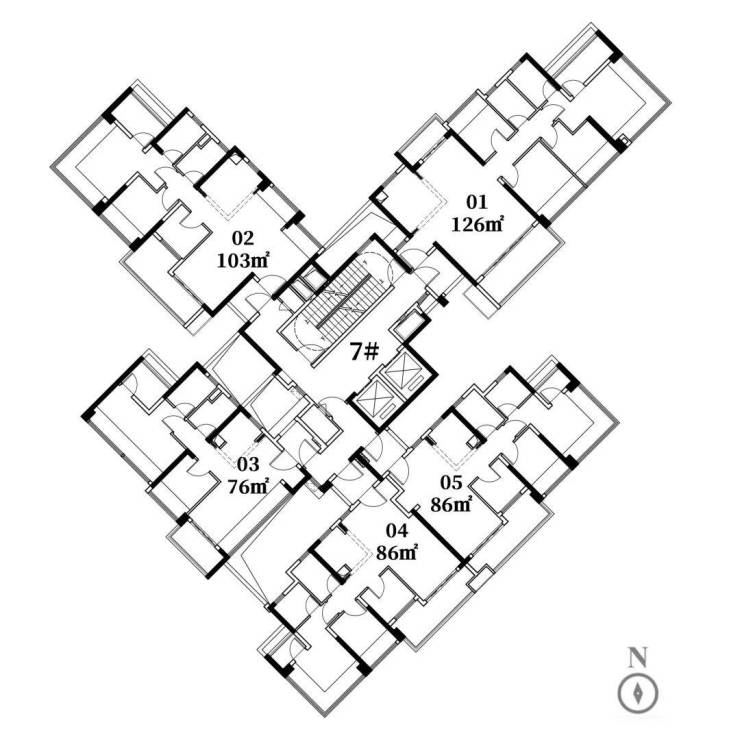 在售楼栋:7、14、15、16栋,33层,2梯5户