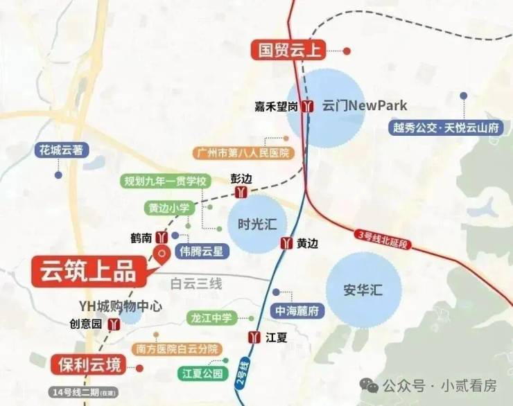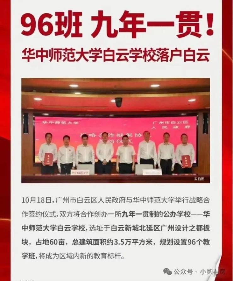 3、教育资源丰富:根据最新招生文件,项目对口白云老牌省一级公办小学——黄边小学。2025 年 9 月黄边旧改会建一所九年一贯制的中小学,将作为小区的配建学校。另外周边还有培英中学和省实白云学校等,教育资源比较齐全。
