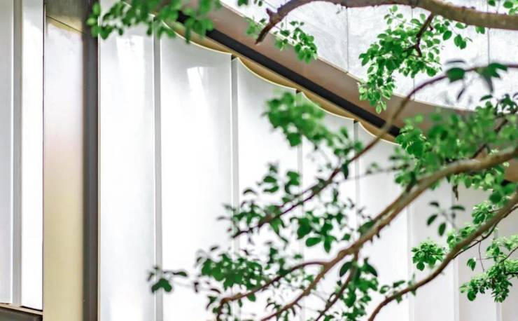 如果你仔细观察还会发现,整面幕墙采用镂空雕刻手法——它并不是一个平面,而是一个立体空间。