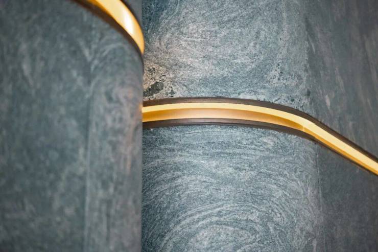 地库大堂以及前厅地面,采用了原产于巴西的范思哲黑天然奢石铺设,质感十分强烈。