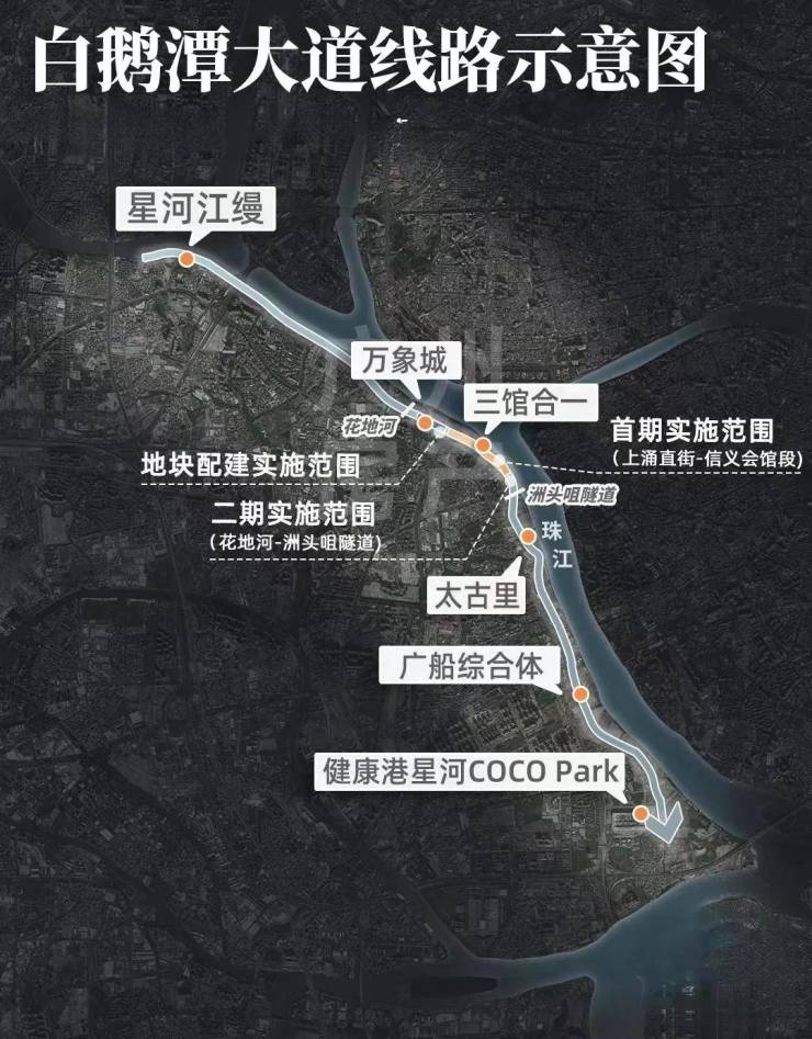 未来通过白鹅潭大道约4公里直达白鹅潭CBD腹地
