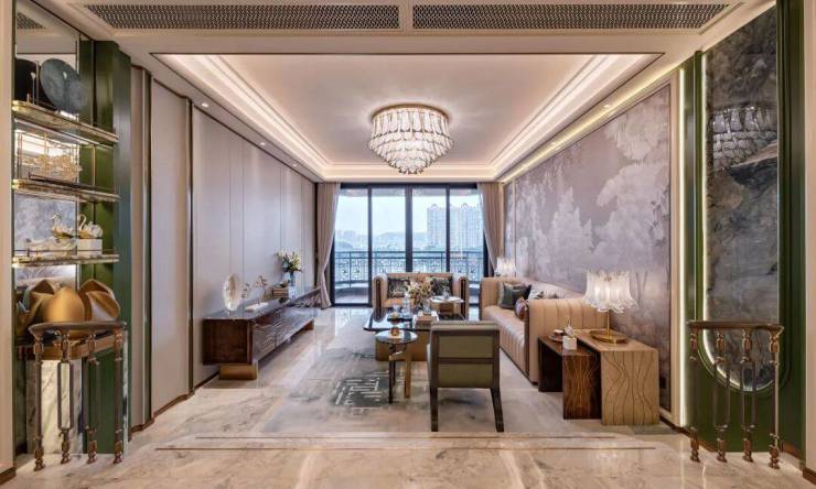✨客厅背景墙为阿玛尼底材刺绣墙艺,营造清雅美学。