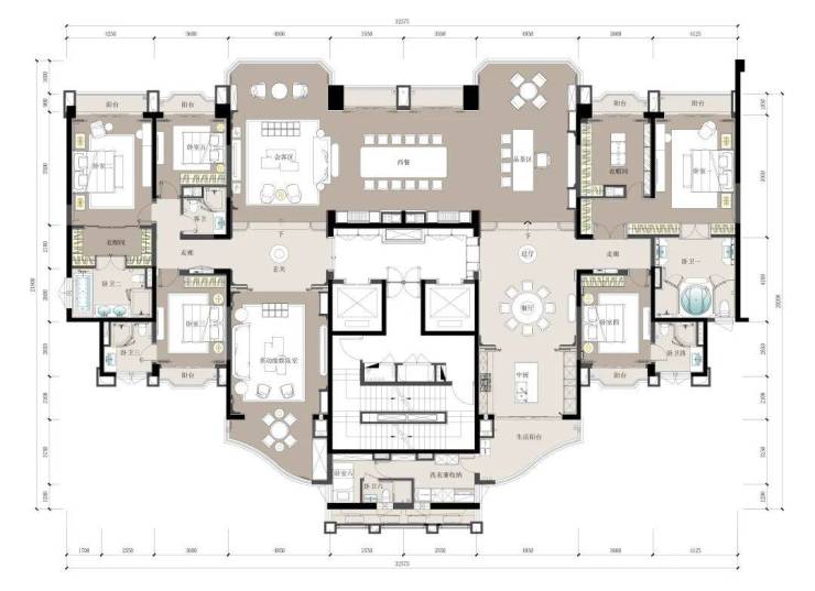 3. 空间价值: 总统级主人套房、双宴会厅、独立电梯厅,功能完整覆盖世家大族的居住、社交、宴请与私密需求。