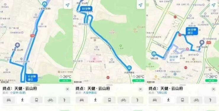 此外,天健·云山府位于白云新城城芯处,还肩负着从北进入越秀区、天河区、荔湾区的门户口岸位置,有着三地铁汇聚的立体交通网络,目前距离项目约1km是2号线白云公园站和地铁11号线大金钟站(正在建设中,预计今年将会开通),同时还规划有地铁12号线的小金钟站距离项目仅仅约400m(预计今年开通)。