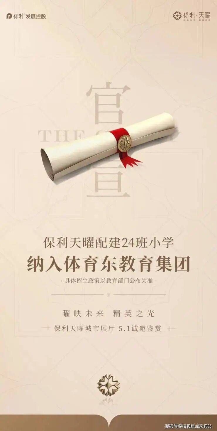 天曜就同步官宣:配建的24班小学,纳入体育东教育集团。(具体招生政策以教育部门官宣为准)
