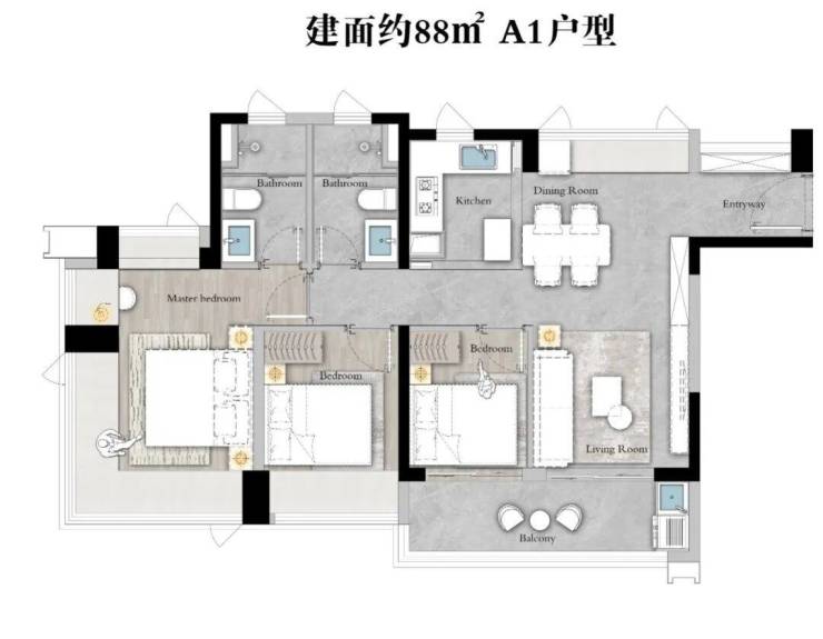 产品以主打刚需,有88㎡、98㎡、108㎡三至四房