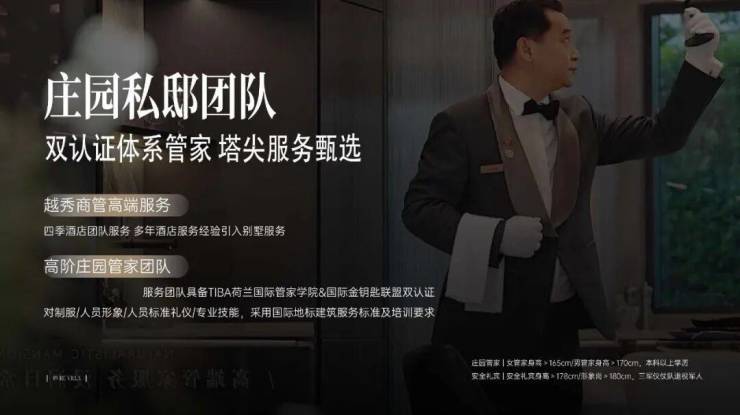 •双认证体系管家:服务团队具备TIBA荷兰国际管家学院&国际金钥匙联盟双认证,对制服/人员形象/人员标准礼仪/专业技能,采用国际地标建筑服务标准及培训要求。