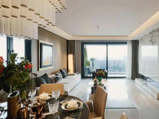 建筑采用银灰色铝板 + 流线型全玻璃幕墙公建化外立面,对标国际顶豪建筑质感,历久弥新、颜值封神;全屋高端品牌精装交付,定制柜体、隔音门窗、高端厨卫、智能家居系统配齐,所见即所得,无需二次装修。