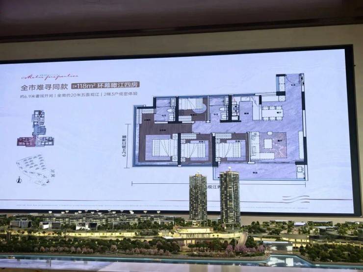 距离江边80米,非常近,这是什么概念?现行政策要求要退江100-200米,所以项目约80米的一线临江,近乎是绝版的存在。项目能享约1000米的阔绰江岸线,约800米巨幕江面,这点是很能打的,要知道侨鑫汇悦台江面400米,天誉半岛320米左右。