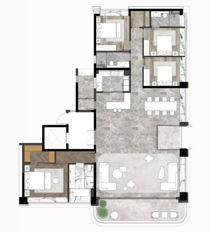 4)产品也不错。大客厅、大阳台,加上装标质感高,豪宅feel是挺到位的。