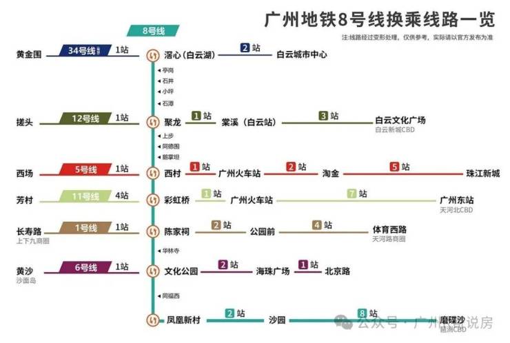 目前,8号线已设有八个换乘站,乘客可在此轻松换乘至多条地铁线路,包括但不限于1号线、2号线、3号线及广佛线,极大地方便了市民的出行需求。