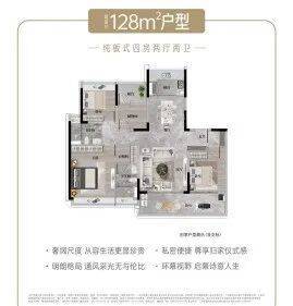 128㎡三房两厅两卫是刚需友好型户型,总价约 614 万元起,三开间朝南,客厅连接阳台,采光充足,适合刚步入改善阶段的年轻家庭。